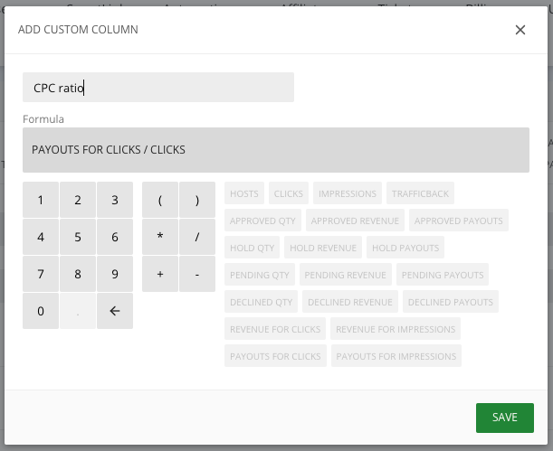 To manage the visibility of these columns or add CPC and CPM ratios, use our additional instruments: a widget for calculations and settings.