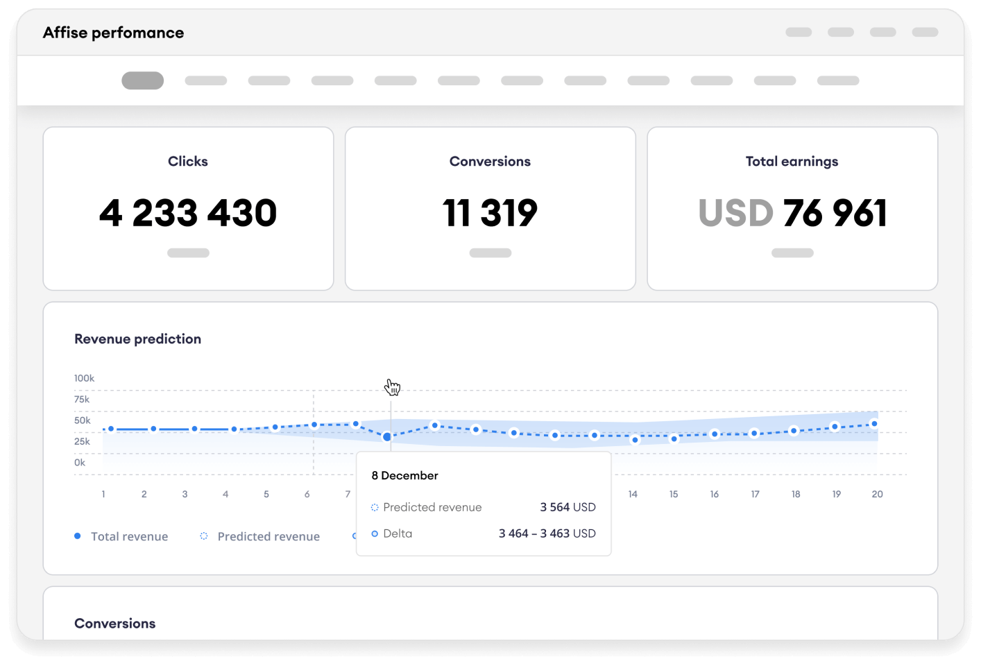 利用 Affise 的集中化成本跟踪功能,体验无与伦比的媒体支出清晰度,做出以数据为导向的决策。