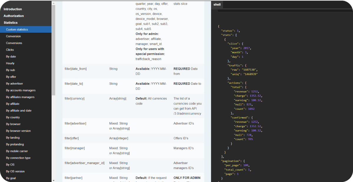 充分发挥 Affise API 的潜力。立即连接到现代平台,使用计费解决方案自动付款,集成第三方工具并扩大合作伙伴机会。